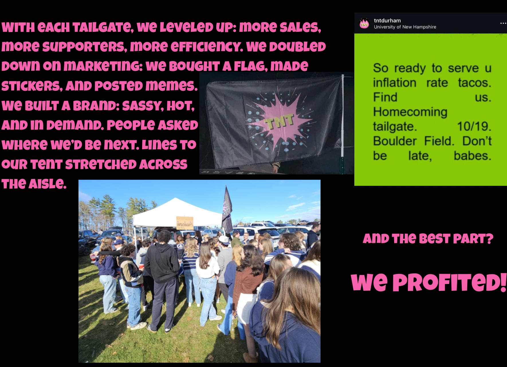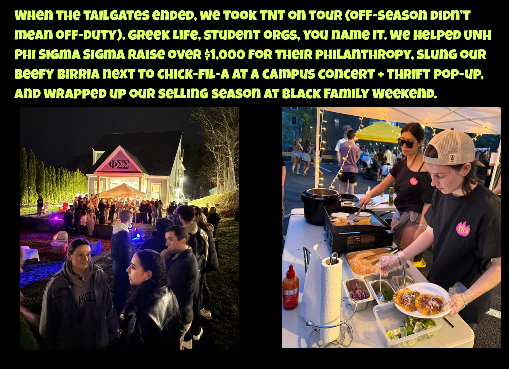 in the Fall of 2024. TNT stands for Tacos and Tea, a name capturing