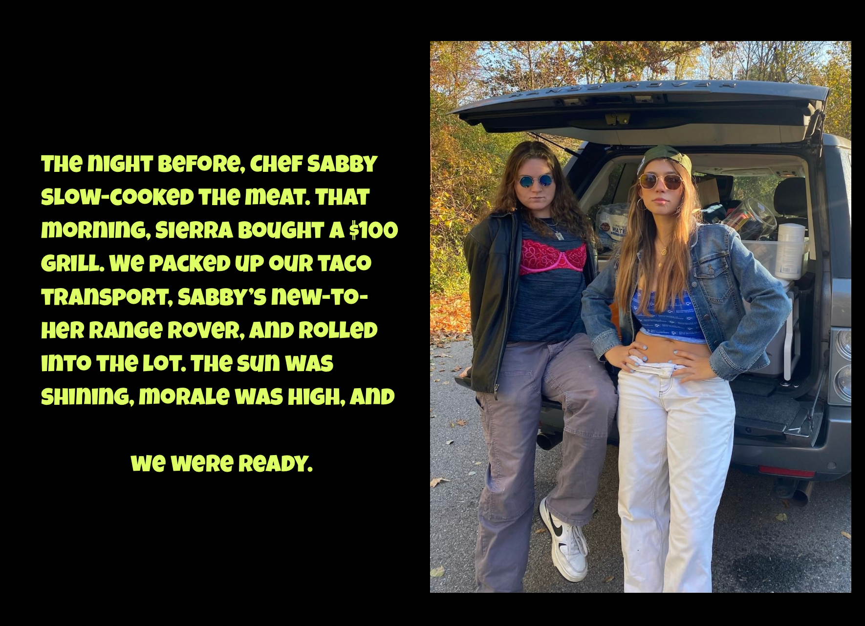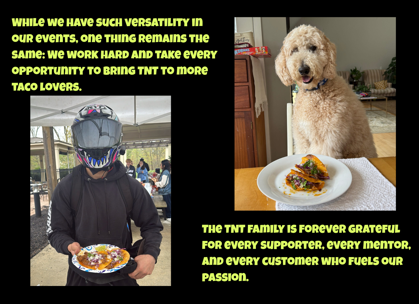 in the Fall of 2024. TNT stands for Tacos and Tea, a name capturing